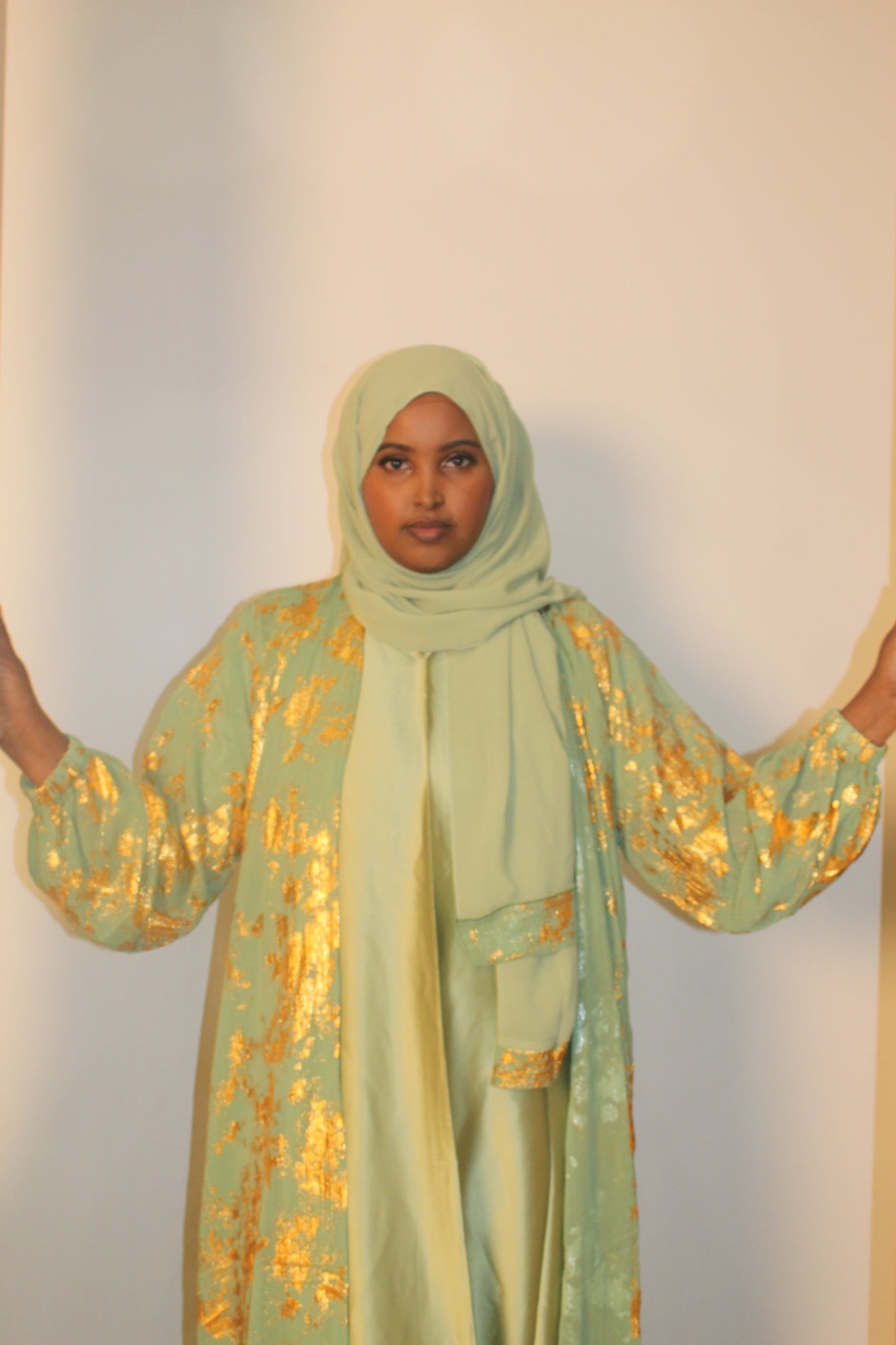 -Step into elegance with our beautiful sets! This set will make you stand out from everyone. While it shimmers and shines, the abaya's inner lining is soft against the skin, ensuring comfort for prolonged wear.
