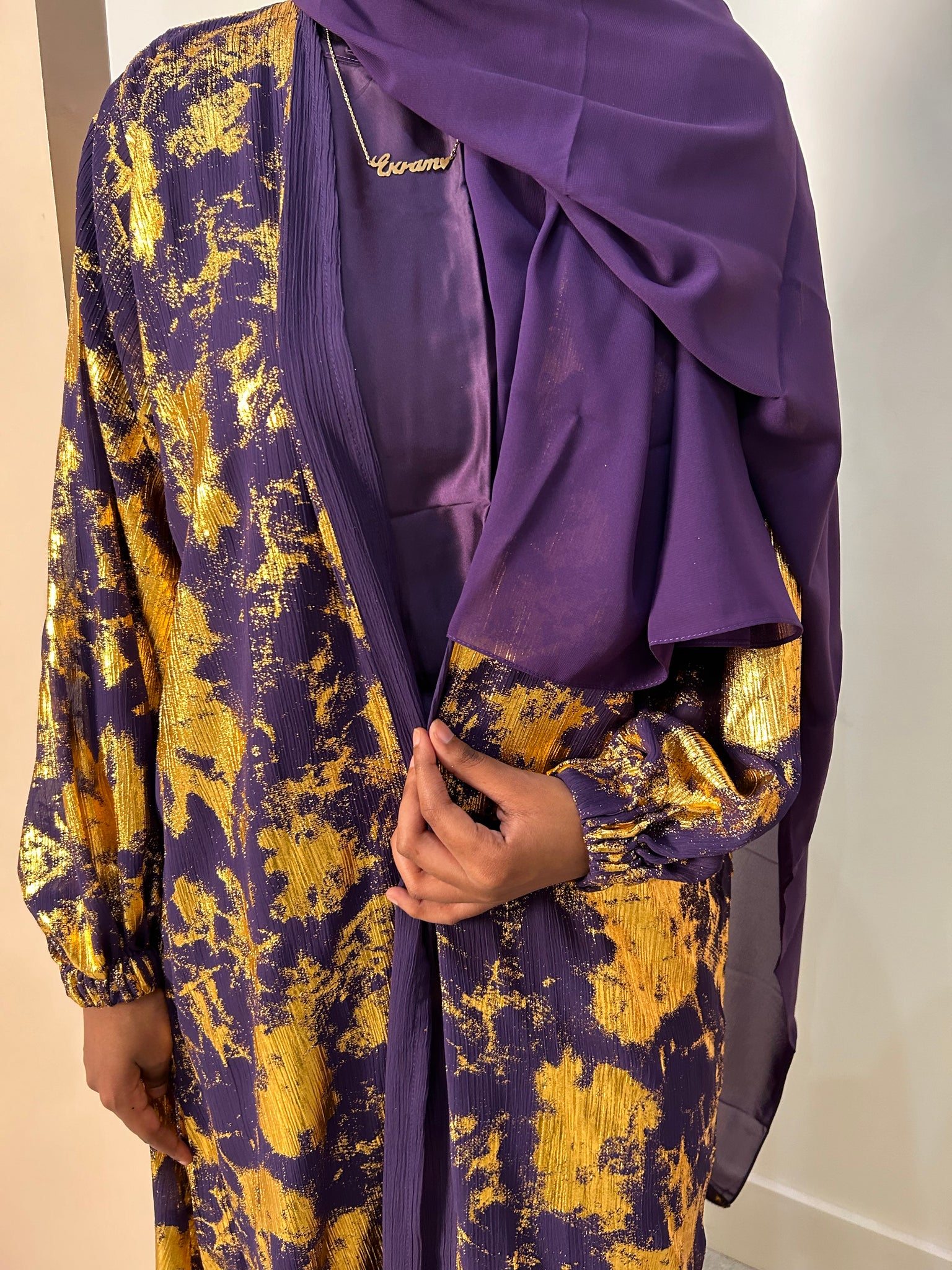 -Step into elegance with our beautiful sets! This set will make you stand out from everyone. While it shimmers and shines, the abaya's inner lining is soft against the skin, ensuring comfort for prolonged wear.